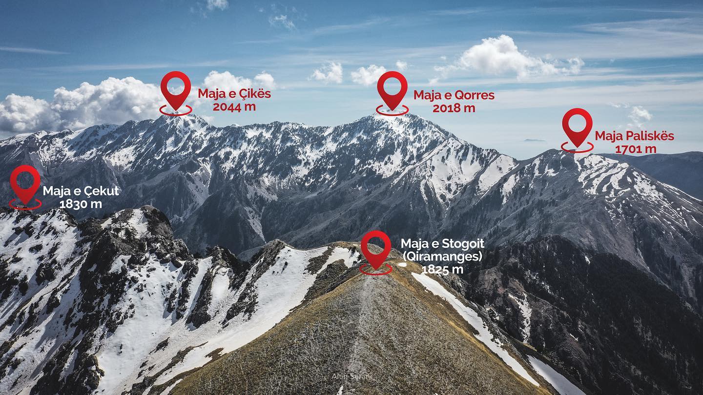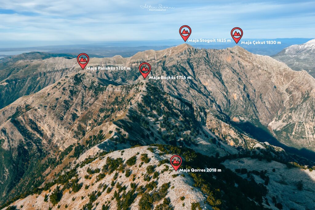 These limestone peaks form a breathtaking backdrop where sea and mountain meet. The range is anchored by its highest summit, Maja e Çikës, standing at around 2,044 m, offering panoramic views that reward every hiker and photographer.